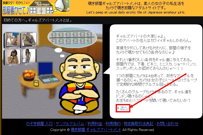 最初にギャルズアパートメントのサイトに移動してください。