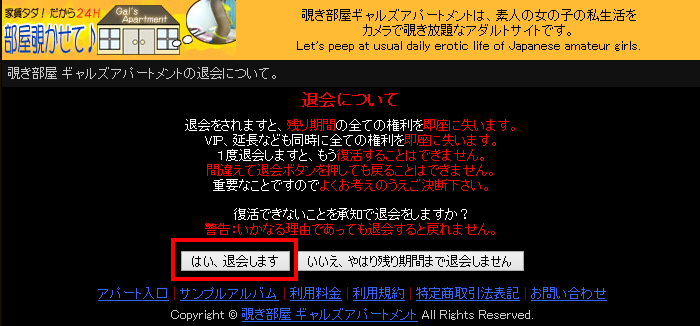 ギャルズアパートメントの退会については、2つ注意点が有ります。